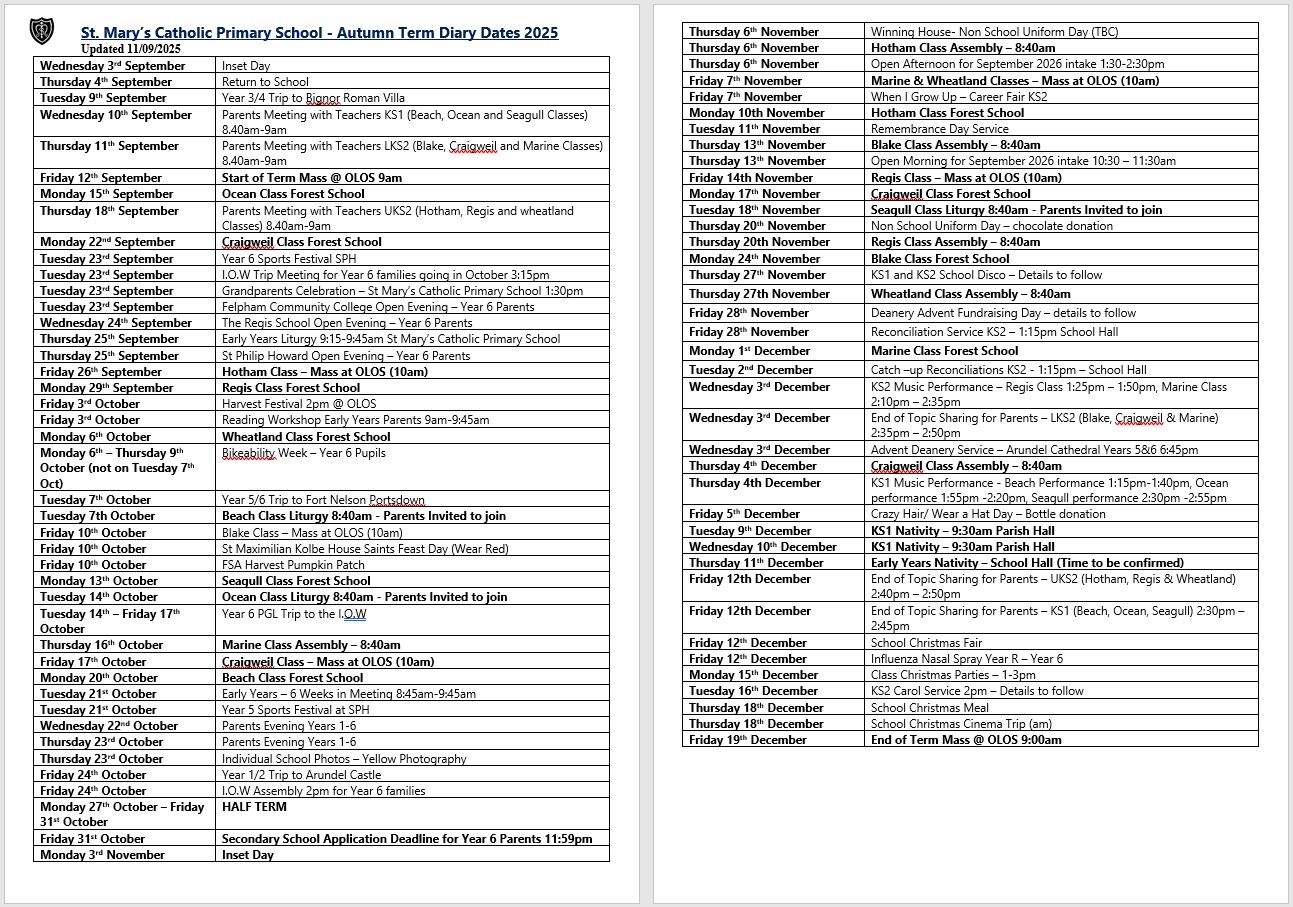 Thank you for considering St Mary’s Catholic Primary School for your child’s education. We look forward to welcoming you into our school family.